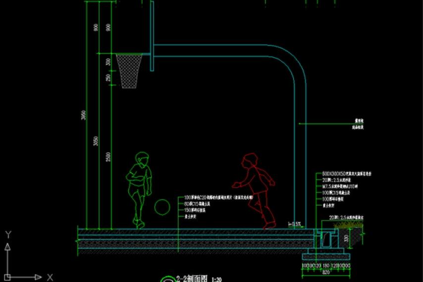 標(biāo)準(zhǔn)籃球場(chǎng)施工圖及籃球架、排水溝圖紙
