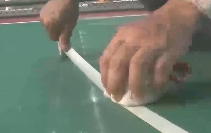 面漆層施工分為:標(biāo)記界線、滾涂、打磨、清掃、修補(bǔ)面層和邊角等;