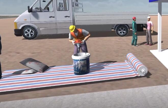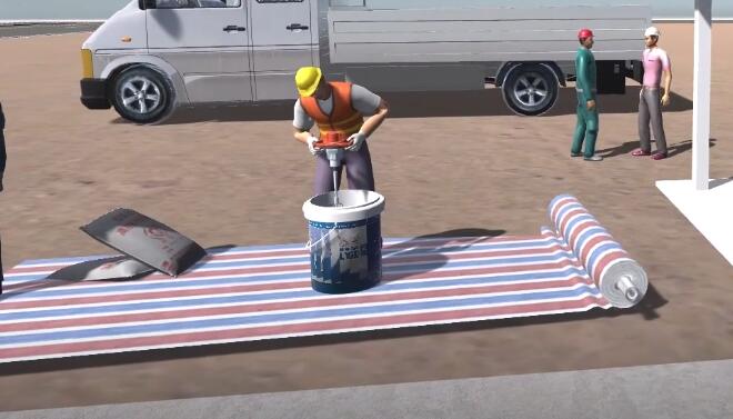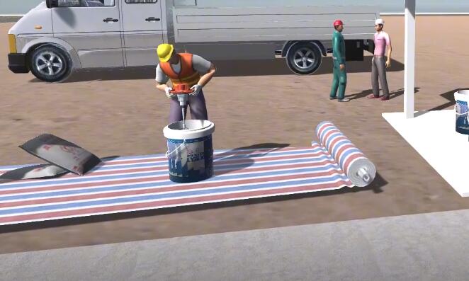 彈性層配比攪拌,彈性層+流平漆