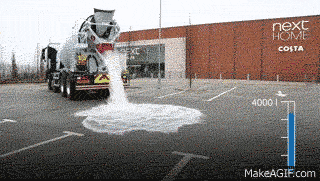 如下圖所示,透水混凝土就像海綿一樣瞬間講水吸完,能在60秒內(nèi)吸收4噸水,不留任何痕跡。