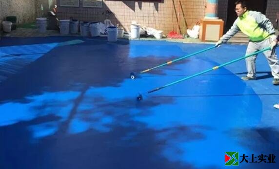 打開(kāi)水性丙烯酸面漆,(天氣熱適當(dāng)加水)使用電動(dòng)攪拌機(jī)充分?jǐn)嚢杈鶆?,用刮刀刮涂地面,然后用滾筒滾涂收尾,待干后進(jìn)入下一步工序。(2層)