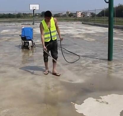 在用高壓水槍進行沖刷干凈,這樣做的目的是讓底漆和地面粘結(jié)牢固。