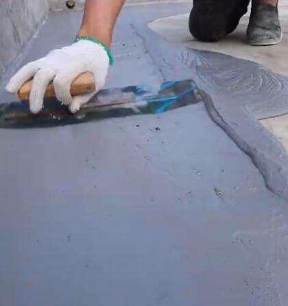 把調(diào)配好的涂料到在已經(jīng)干燥的地面上,用鏝刀刮涂平整均勻。