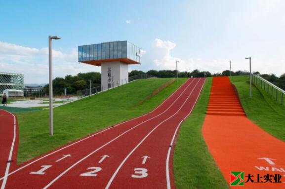 紅色部分是跑道,綠色、橙色屬于慢行道,可以有效地減少相互干擾。整條跑道和以往見(jiàn)過(guò)的任何一條操場(chǎng)跑道都不一樣