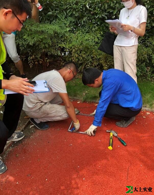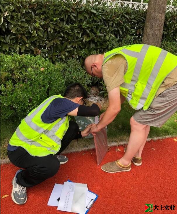 已基本完畢,今天下午,家委會代表全程參與了施工后新跑道的采樣送檢工作,由家委會代表隨機指定,專業(yè)人員現(xiàn)場裁割兩塊跑道材料,密封后送專業(yè)機構(gòu)檢測。本次施工采用的是上海最新團標,標準更為嚴格。