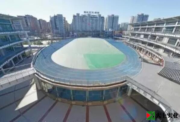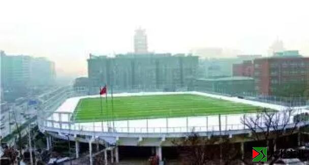 北京市首座架在城市繁華地帶空中的運動場,由13根46米長的大跨度混凝土梁支撐起來,建成后已成為金融街地區(qū)的一景。該工程地下兩層、地上一層,高4.6米的屋面設計為架空運動場,包括一個標準的400塑膠跑道和一塊