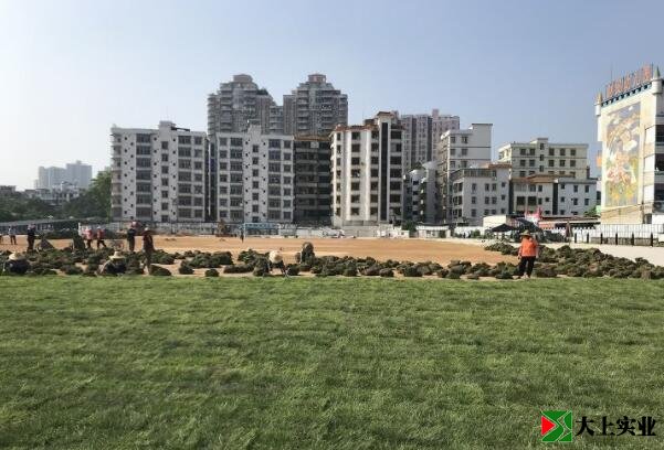 天然草坪施工階段,預(yù)計一個星期內(nèi)可以施工完畢。