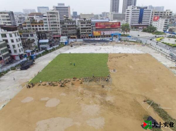 高州廣場運(yùn)動場天然草坪施工中