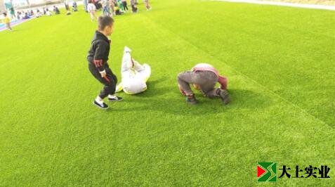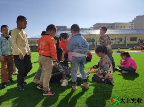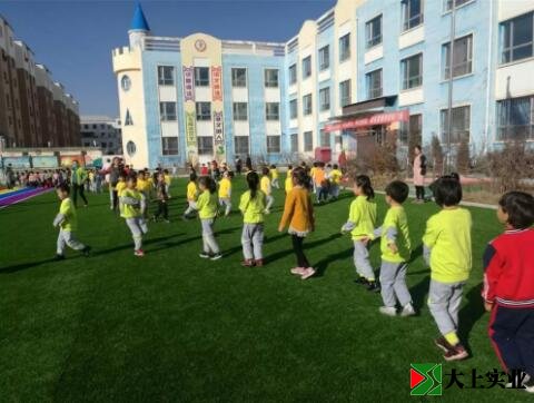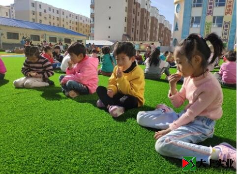 幼兒園土操場改鋪設人造草坪 萌娃們歡天喜地