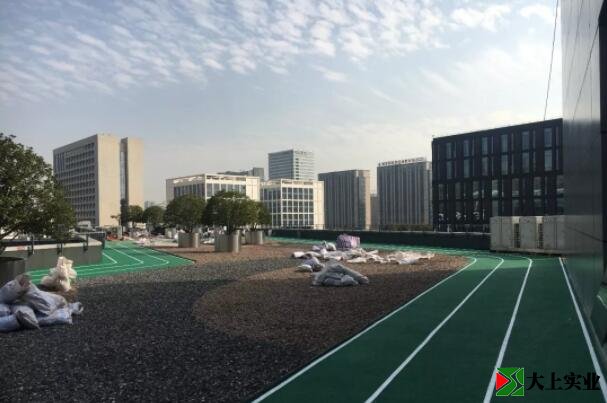 阿里巴巴樓頂綠色塑膠跑道建成