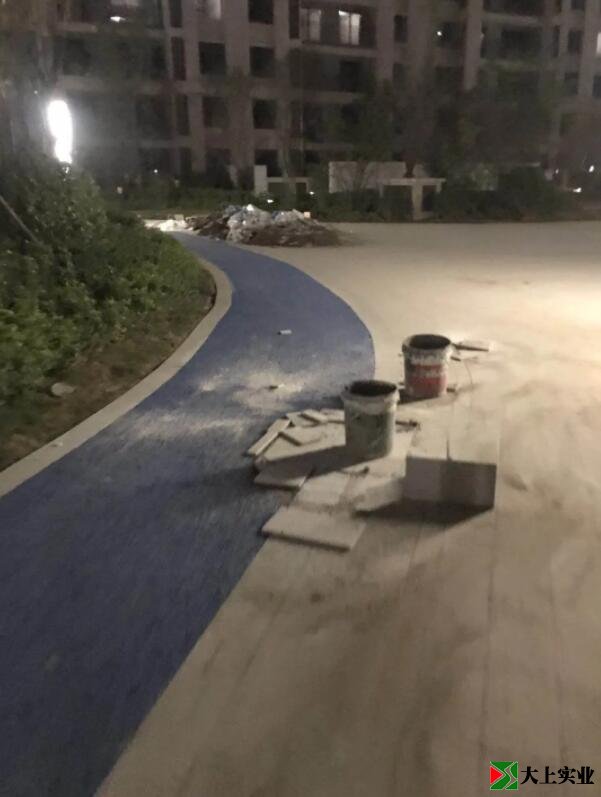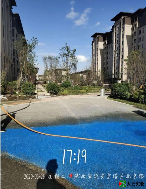 筆者沒有去現(xiàn)場看,但是從發(fā)來的視頻中,聽見業(yè)主們說:這就是水泥石子路噴了點藍漆。