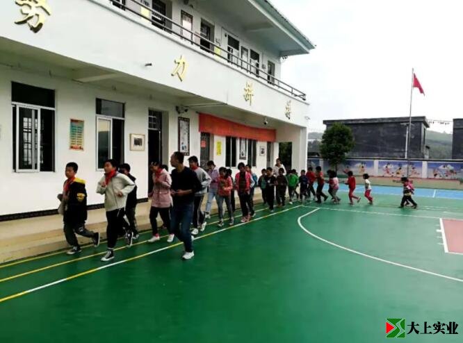 中山西區(qū)扶貧隊駐揚(yáng)名村干部看著教學(xué)點(diǎn)幾十個留守兒童,每天在不甚平整的水泥地板上畏手畏腳進(jìn)行體育鍛煉,萌生了為孩子們建設(shè)一個安全、環(huán)保的塑膠運(yùn)動場的念頭。這個想法很快就得到了幫扶單位的支持,經(jīng)過實地考察、立項、施工······不到半月,投資6.7萬多元嶄新的、高質(zhì)量的硅PU材質(zhì)學(xué)校塑膠運(yùn)動場建設(shè)完成了。