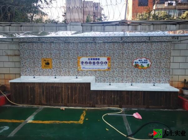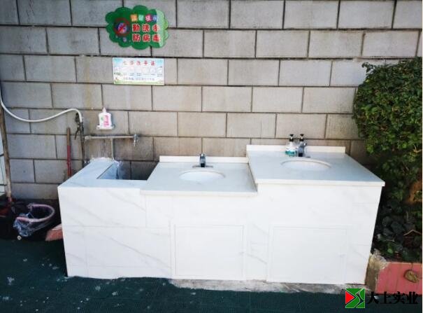 螺峰校區(qū)在操場旁建設(shè)安裝了1高2矮的感應(yīng)洗手臺一個(gè)