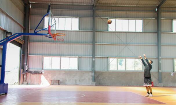 選好場地,鋪好橡膠,搭起了板房,很快,歷時(shí)三個(gè)多月的時(shí)間,一個(gè)嶄新的室內(nèi)籃球場完工。