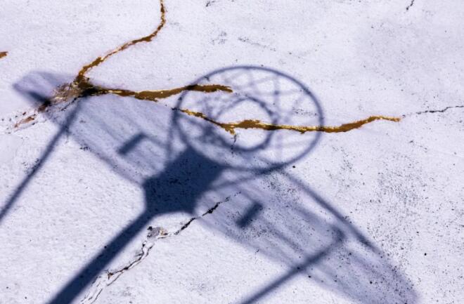 近日,洛杉磯南部一處破舊的籃球場通過修復(fù)而重獲新生。一道道金色“閃電”讓這個(gè)幾近廢置的籃球場變得熠熠生輝。