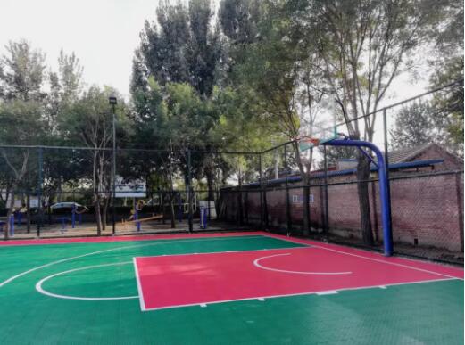 如今的籃球場(chǎng)煥然一新,以紅、綠色為主色調(diào),在藍(lán)天白云的映襯下顯得格外酷炫。