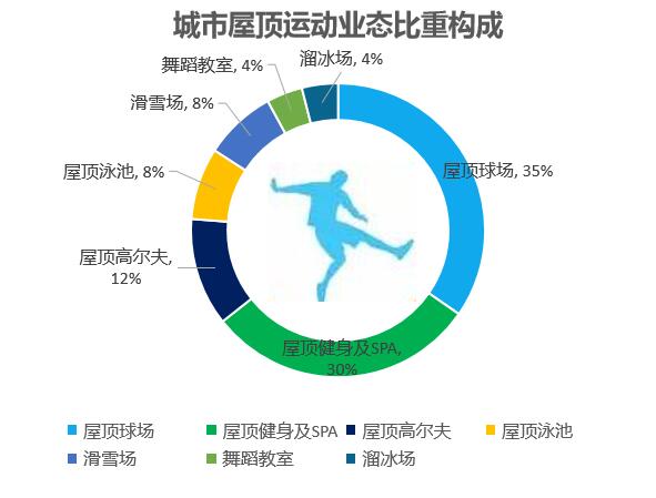 在屋頂運動業(yè)態(tài)中,屋頂球場、屋頂健身及SPA會所占比最為突出,達到65%。從普及率來看,高爾夫、舞蹈教室、溜冰場屬于小眾運動業(yè)態(tài),并不適合大規(guī)模在建筑屋頂布局;從建造及運營成本來看,屋頂泳池、滑雪場的建筑條件要求高,成本巨大。相比之下,兼具大眾普及率和成本可控性的屋頂球場、屋頂健身及SPA會所在運動業(yè)態(tài)中最受青睞。