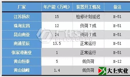 供應(yīng)面。當前,液體樹脂生產(chǎn)裝置負荷維持在5成上下,華東地區(qū)液體樹脂生產(chǎn)裝置負荷低位,負荷提升緩慢。其中,江蘇揚農(nóng)15萬噸/年環(huán)氧樹脂裝置繼續(xù)延遲檢修計劃;南通星辰16萬噸/年環(huán)氧樹脂裝置已重啟;廣州宏昌8.5萬噸/年環(huán)氧樹脂裝置停車,珠海宏昌12萬噸/年裝置開工7成。受環(huán)保檢查因素影響,黃山地區(qū)固體樹脂生產(chǎn)裝置低負荷運行。