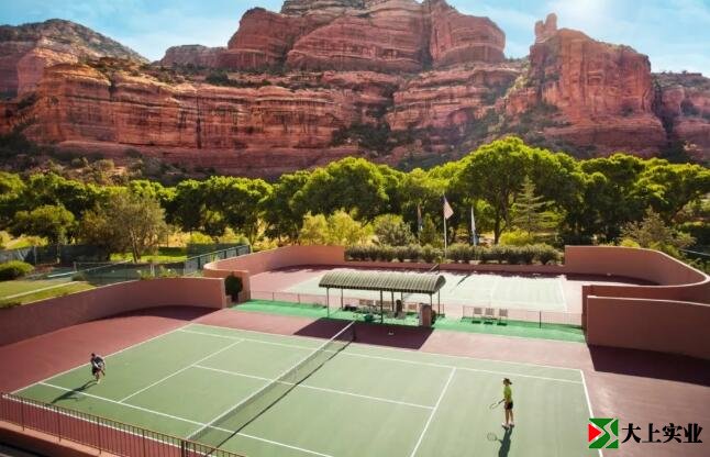 3、紅色巖石峭壁下的網(wǎng)球場
