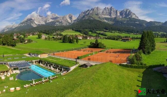 奧地利生態(tài)酒店的網(wǎng)球場,坐落在迷人的奧地利阿爾卑斯山腳下,除了6個室內(nèi)網(wǎng)球場外,還有8個室外紅土網(wǎng)球場。