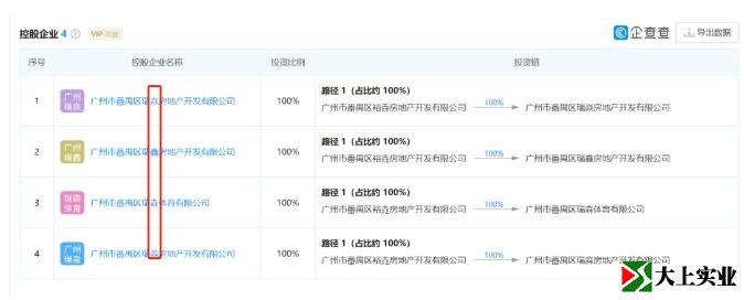 這次拍地的恒大子公司,全名是廣州市番禺區(qū)裕垚房地產開發(fā)有限公司,如果查詢這家公司的控股企業(yè),會看到這樣的信息: