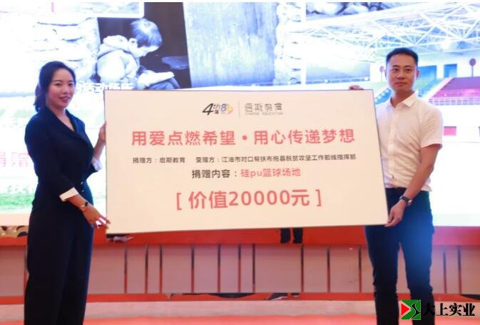 大會中啟斯教育現(xiàn)場向“綿陽市青少年活動中心”捐贈圖書2000本,通過“江油市對口幫扶布拖縣脫貧攻堅工作前線指揮部”向“基只鄉(xiāng)中心校”捐贈硅pu籃球場地一座。