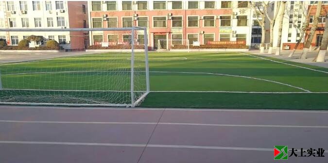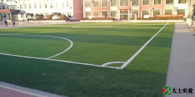 大上實業(yè)對足球場進行了改建,足球場由原來的水泥面改建成現在的人工草坪球場。該球場規(guī)格為:40.05米*23米,填充白色石英砂和環(huán)保橡膠顆粒。