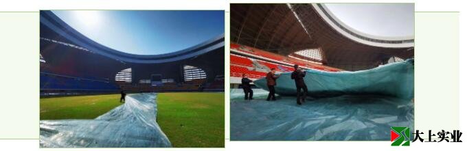 在三月上旬時(shí)草坪一片生機(jī)盎然,場(chǎng)地的防凍保暖措施就尤為重要,我們請(qǐng)來(lái)了專業(yè)的工作人員對(duì)比賽草坪進(jìn)行了塑料布全場(chǎng)地覆蓋,讓草坪適應(yīng)寒冷的天氣。